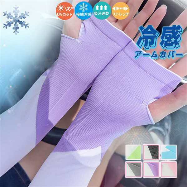 アームカバー 冷感 UVカット 吸汗速乾 2点セット 指穴付き 袖カバー 切り替え 伸縮性 ひんやり 冷房対策 接触冷感 通気性 おしゃれ 自転車