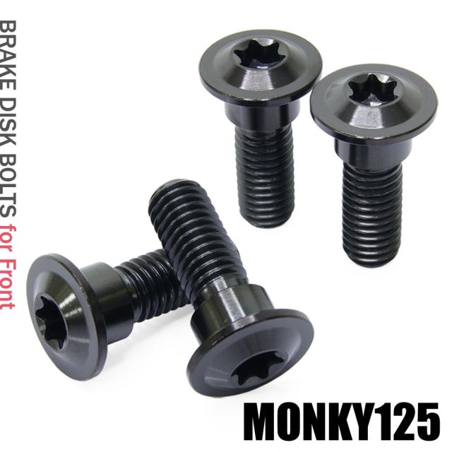チタンボルト ホンダ モンキー125専用 ブレーキディスクボルト フロント用 4本セット M8×24 P1.25 ブラック 軽量化 カスタム ネジ