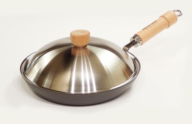 厚板フライパンにお手入れが簡単なステンレス製蓋とのセットで調理の幅が広がります。