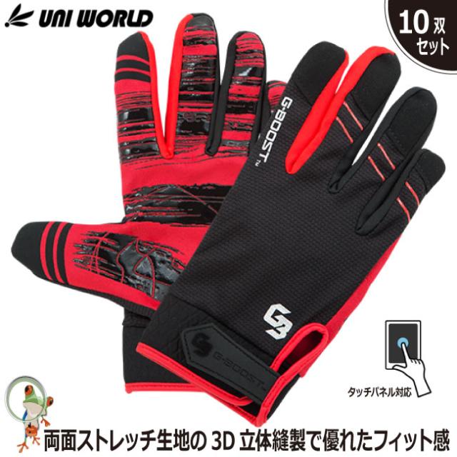 作業用 手袋 作業用手袋 G-BOOST アクティブブラッシュ GB-1001【10双セット】ブラック×レッド ユニワールド タッチパネル対応 メカニックグローブ 業務用