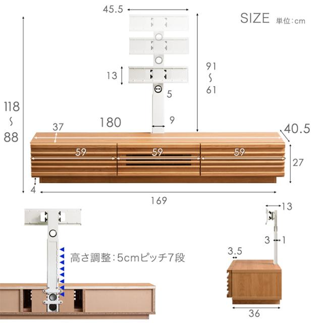 スタンド付 TVボード 180 完成品 日本製 上下/左右 首振り 32? 65インチ 対応 高さ調節 テレビ台 AVボード TVボード 壁寄せテレビスタンド 壁寄せ テレビスタンド キャビネット
