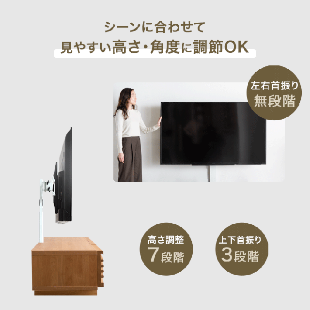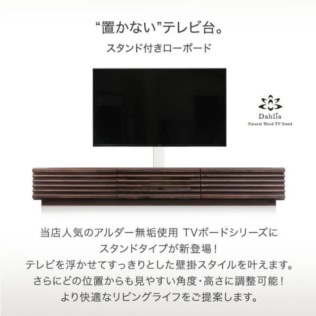 “置かない” テレビ台 180 アルダー 無垢 スタンド付き ローボード 完成品 日本製 上下/左右 首振り 32~65インチ対応 置かないテレビ台 テレビラック 壁寄せ テレビスタンド おしゃれ 国産 【超大型】【後払/時間指定NG】