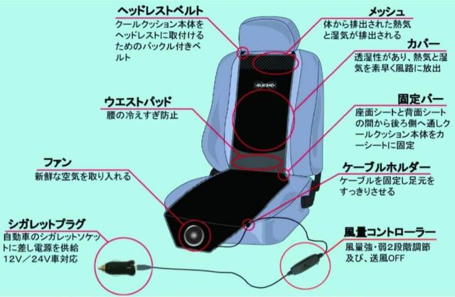 空調服 クールクッション KC1000B ドライブ 夏 対策 暑さ対策 座席 シート 蒸れない 低騒音