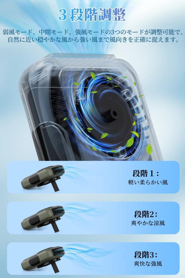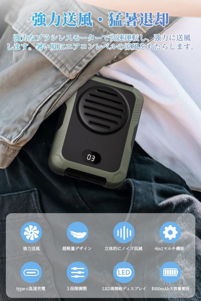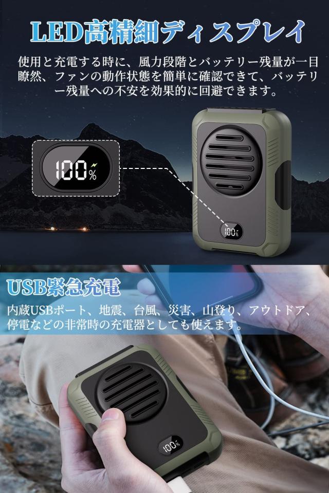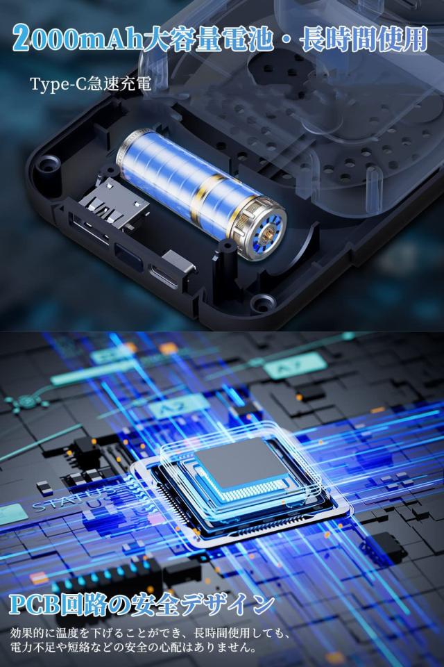 【長時間連続使用可能】2000mAhの大容量バッテリーを搭載され、長時間の連続使用、Type-C急速充電、満充電から約10時間の連続稼働が可能です( 風力階級1:10時間、 風力階級2:6時間、 風力階級3:3時間)。 PCB回路の安全設計により、電子機器の温度を効果的に下げます。 長時間使用しても、電力不足や機器のショートなどの安全上の心配がありません。