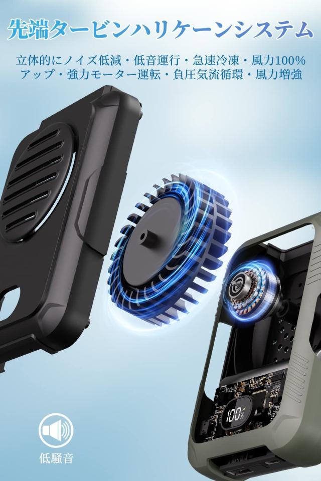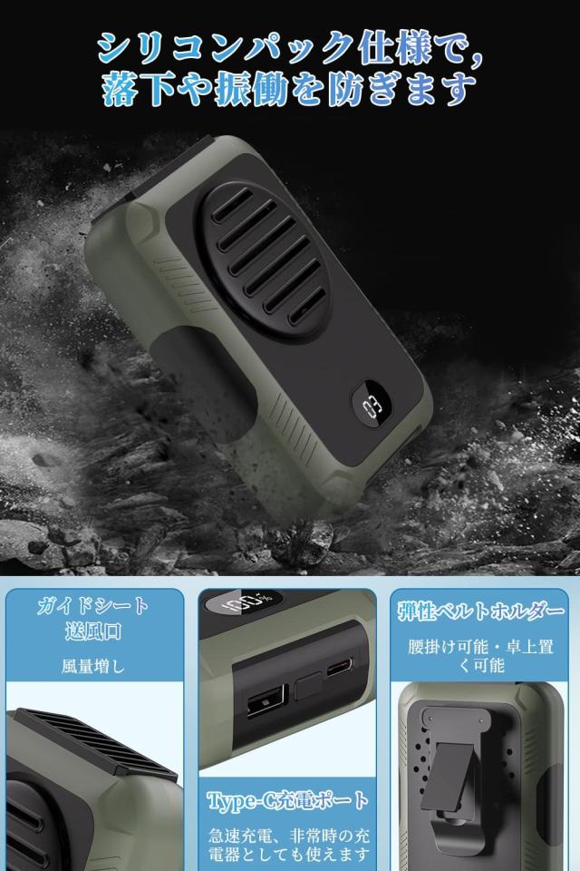 【最先端のデュアルコア強力なパワータービン+第三世代ブラシレスモーター】立体的なノイズリダクション、低騒音運転、急速冷却を実現します。小型、軽量で持ち運びが簡単だけでなく、強力なモーターが高速で回転し、負圧が空気を循環させて風力を高め、風力が100%にアップします。暑い夏にエアコン並みの涼風を持てます。 全周シリコン素材を包みのデザインで、落下を防止し、衝撃を軽減します。