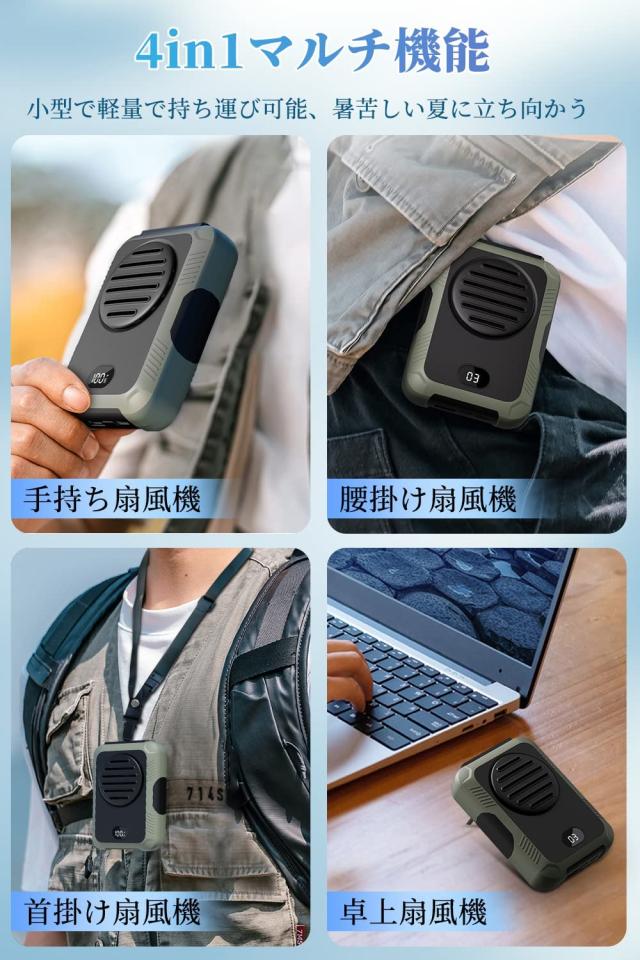 【2023新登場&腰掛け/首掛け/卓上/手持ち】携帯扇風機 腰掛け扇風機 ベルトファン 首掛け扇風機 1台4役 腰ベルト扇風機 Type-C急速充電 LED残電表示 3段階風量 超強風 静音 小型 軽量 屋外作業 熱中症対策