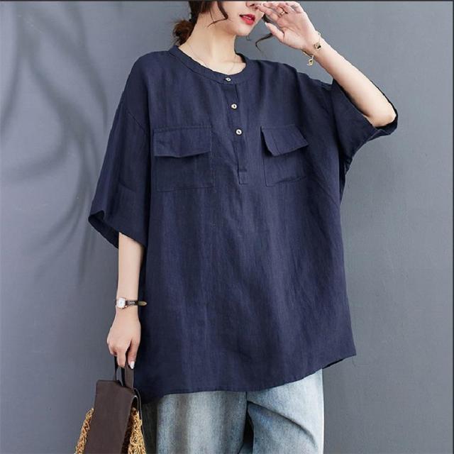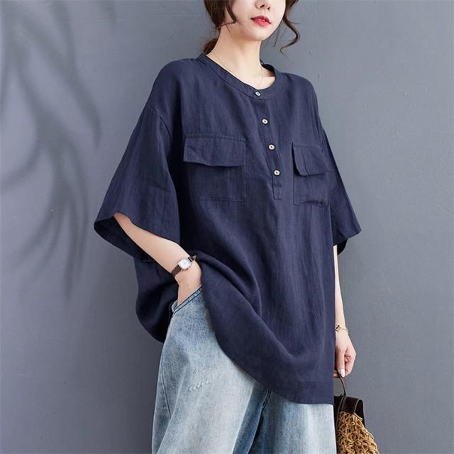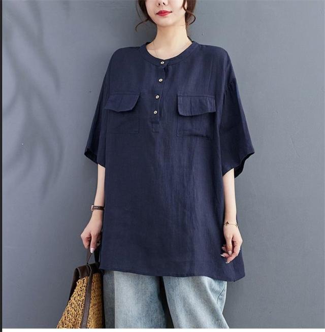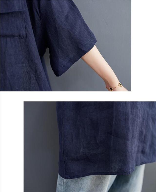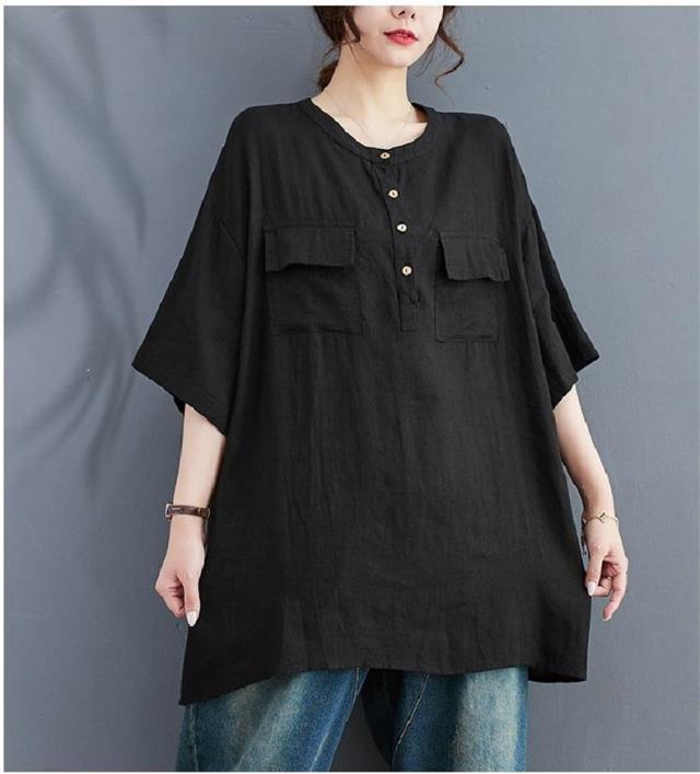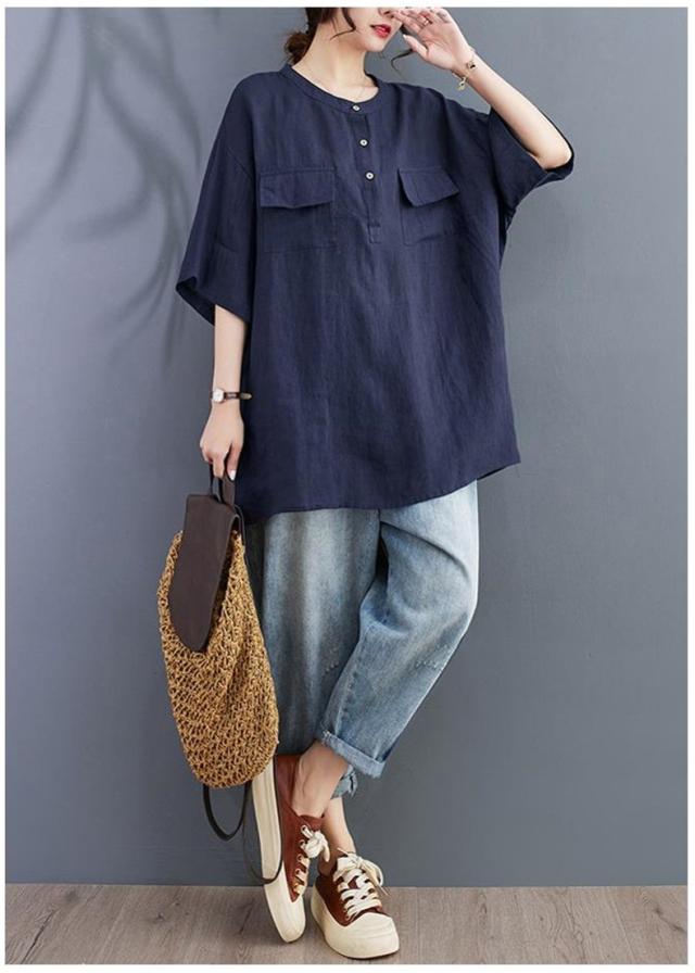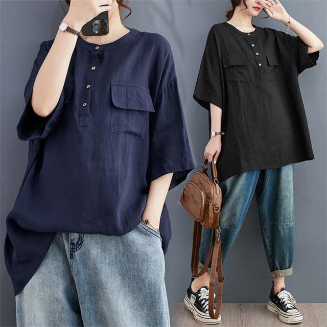 春夏 レトロ シャツ 5分袖 レディース トップス ゆったりとしたシルエット 落ち着いたカラー 大きいサイズ 自然に体型カバー 大人女子の人気コーデに