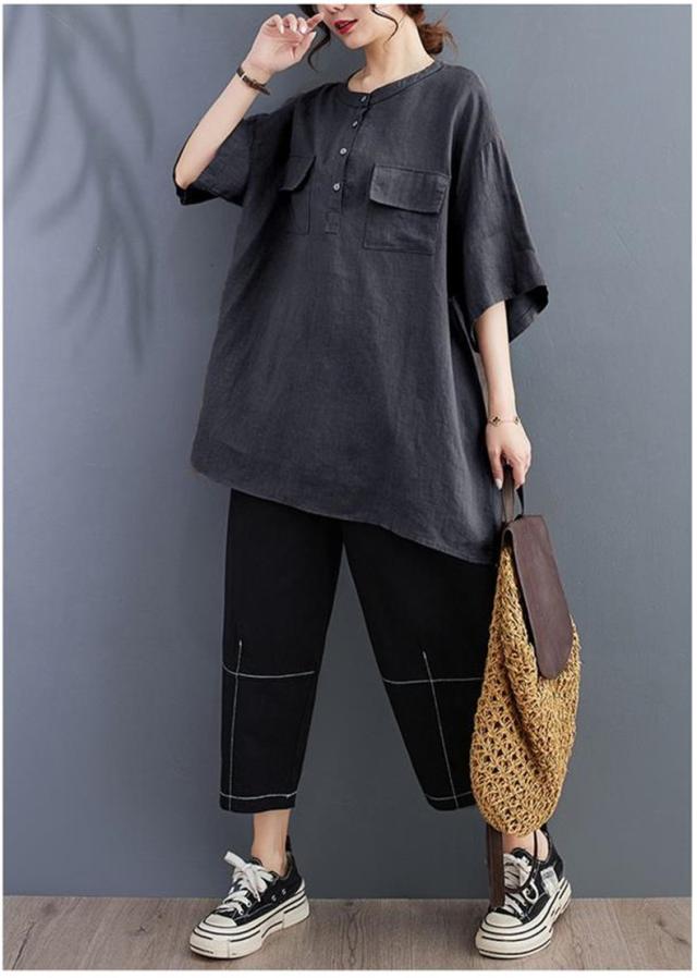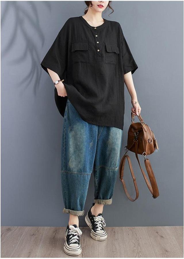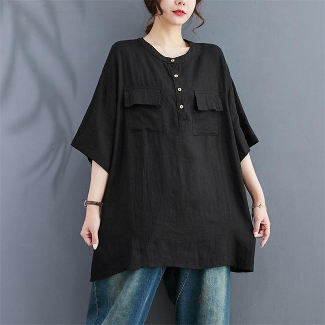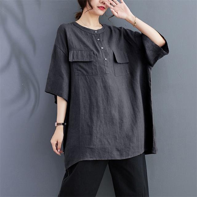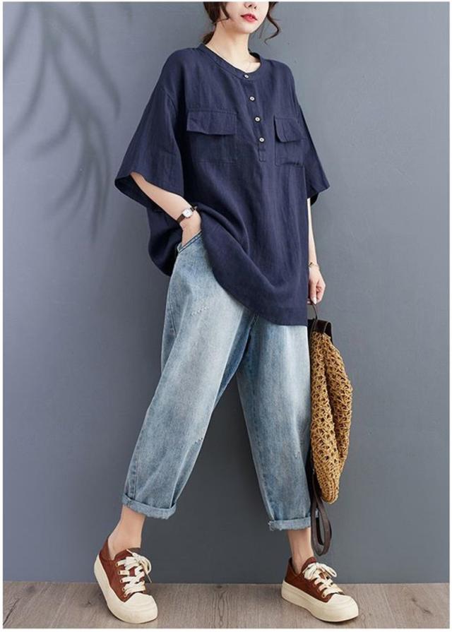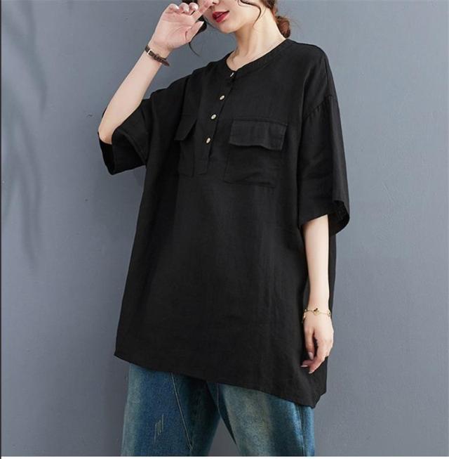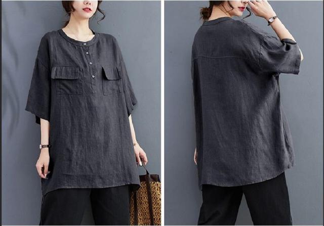 春夏 レトロ シャツ 5分袖 レディース トップス ゆったりとしたシルエット 落ち着いたカラー 大きいサイズ 自然に体型カバー 大人女子の人気コーデに