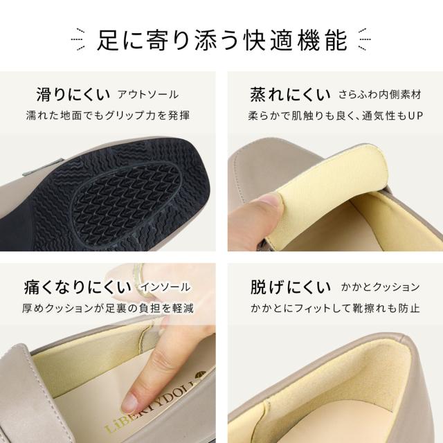 レインシューズ レディース ビットローファー スクエアトゥ ローヒール 滑りにくい 合皮 晴雨兼用 撥水 2cmヒール 22.0-25.0cm No.1402 リバティドール