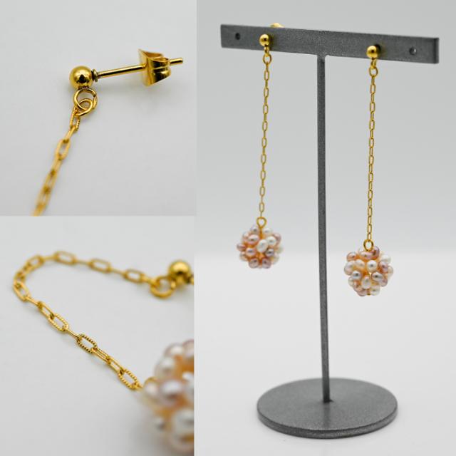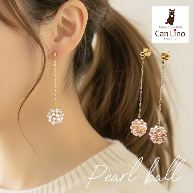 | パールピアス パールボール ステンレス スタッド チェーン ロング 揺れる |