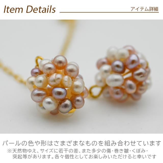 | 淡水パールは天然物ゆえ、サイズに若干の差、また多少の傷・巻き皺・くぼみ・突起等があります。各々個性としてお楽しみいただけると幸いです |