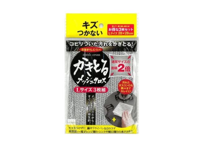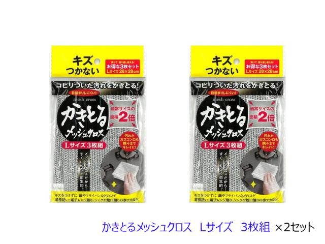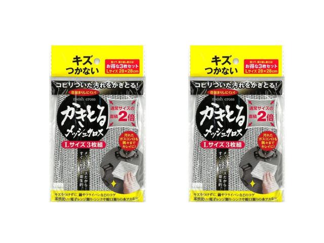 焦げ落とし 汚れ落とし フライパン 電子レンジ廻り シンク キズがつかない「かきとるメッシュクロスLサイズ」3枚組×2セット