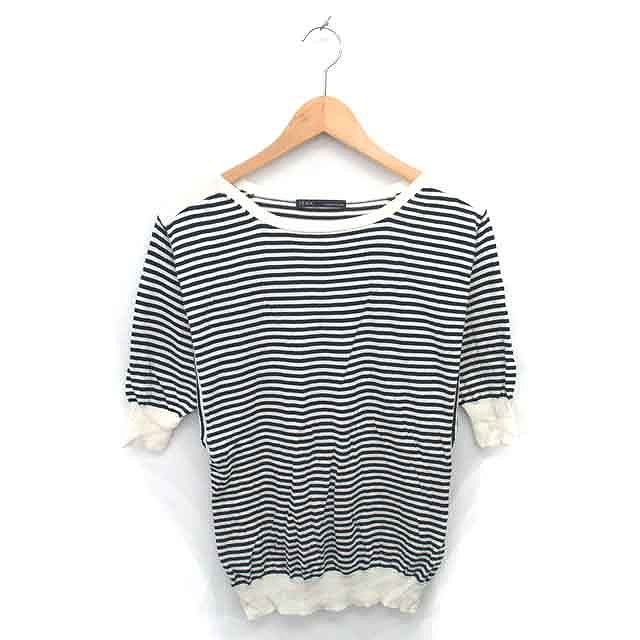 【中古】イエナ IENA カットソー ニット ボーダー 薄手 ドルマンスリーブ 七分袖 アイボリー ネイビー 紺 /TT30