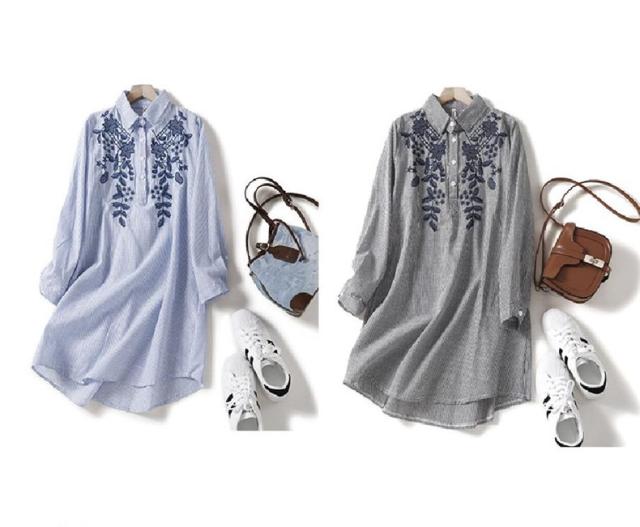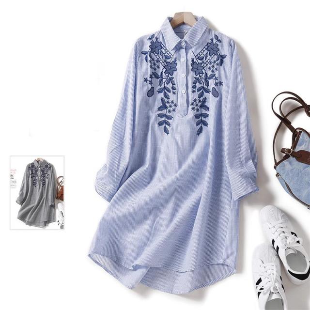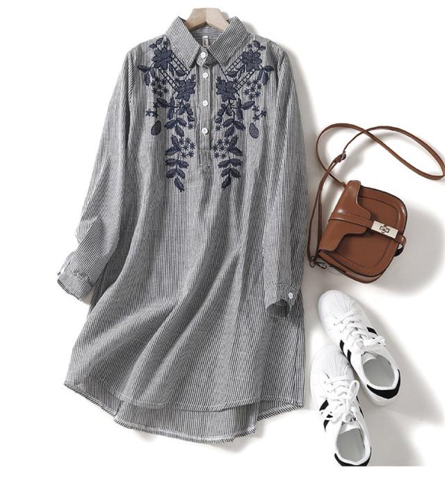 シャツワンピース レディース 刺繍 ロングシャツ 春夏 体のラインを拾わないゆったり 長袖 大きいサイズ シンプル 様々な着こなしを楽しめる