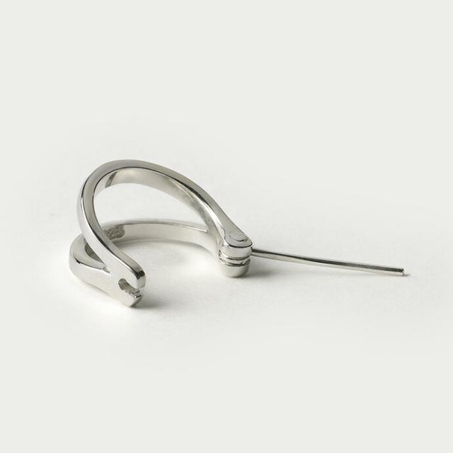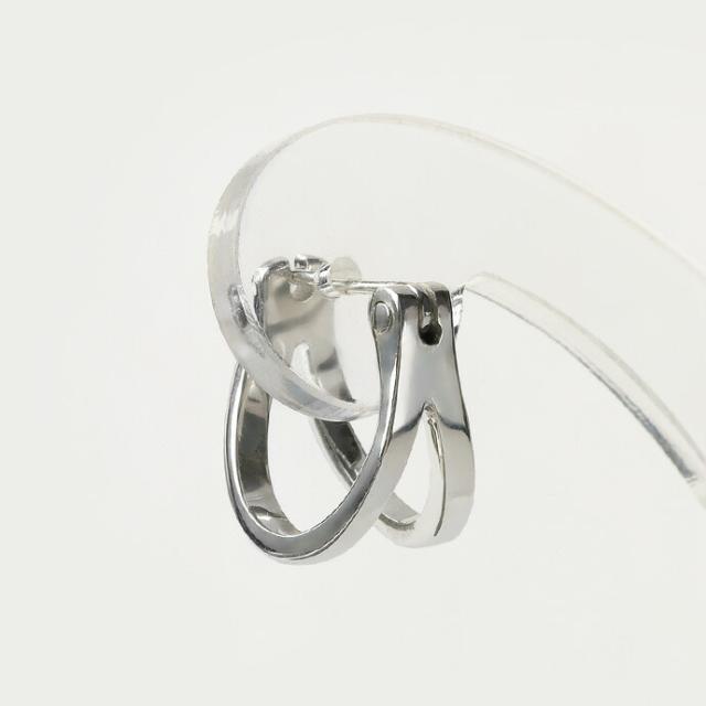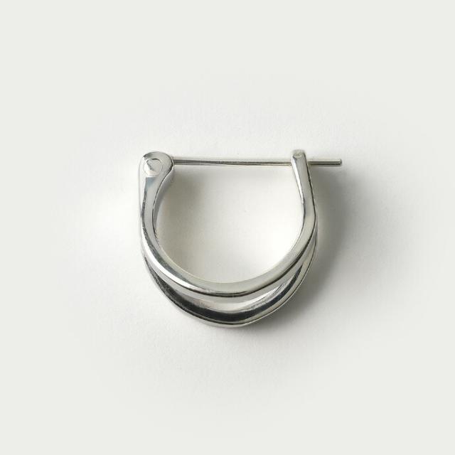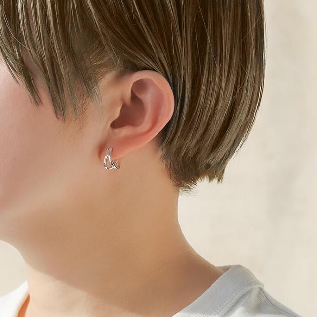 リングが2つ重なったデザインのフープピアス。シンプルで様々なシーンやコーデに着けられるデザインになっています。太すぎず細すぎない、男性にも女性にも合わせやすい幅感なので、ペアで着けるのもオススメです。