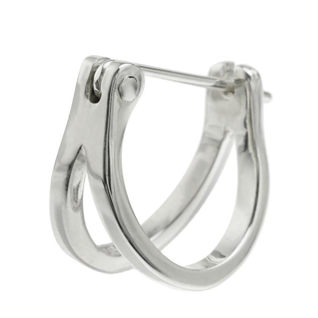 2連 デザイン フープピアス メンズ フープピアス シルバー925 アクセサリー シンプル ダブルリング レディース シルバーピアス 片耳用 (1個売り)