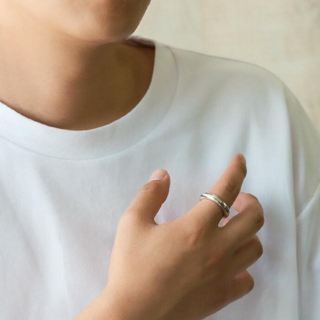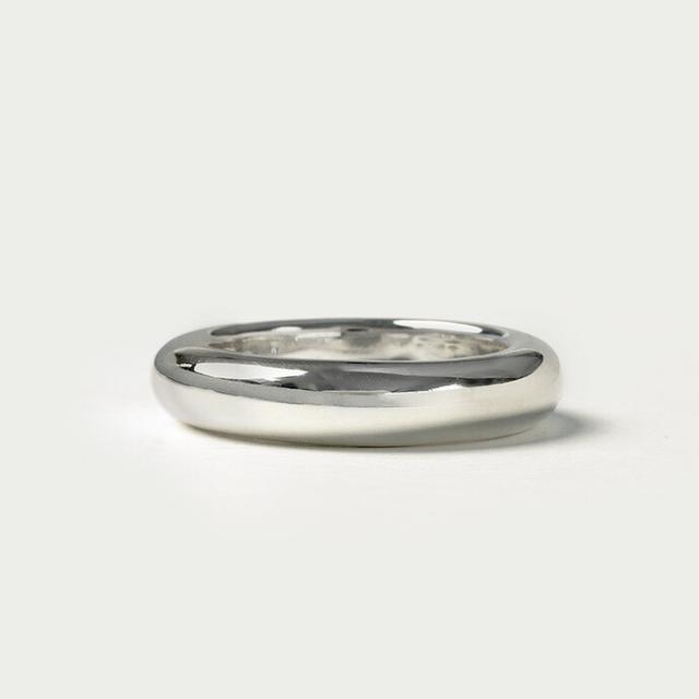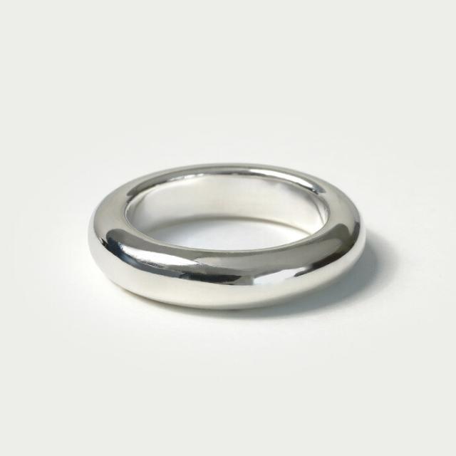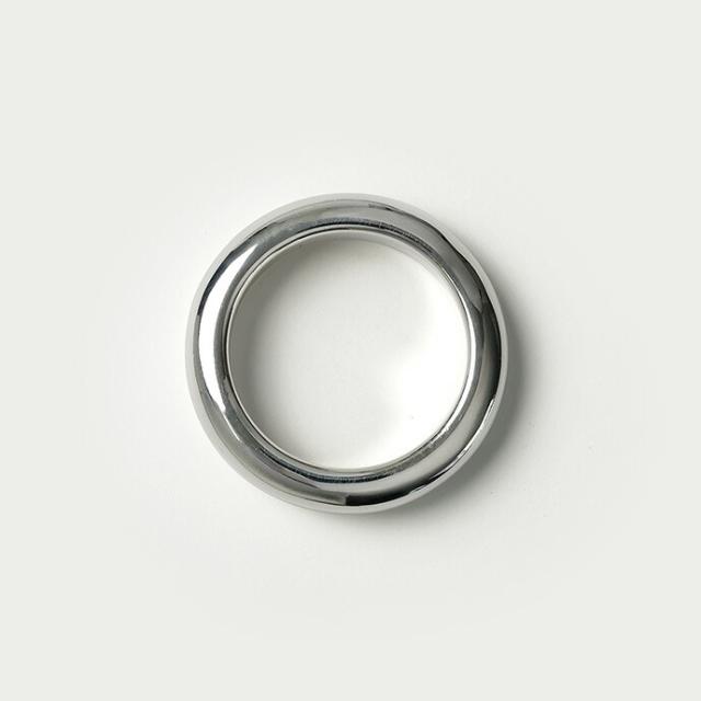 しっかりとした厚みが特徴的な甲丸リングです。余計な装飾のないシンプルなデザインが、手元にモードな雰囲気を演出してくれます。内側をくり抜いていないので、外見同様しっかりとした重厚感を楽しめるアイテムです。