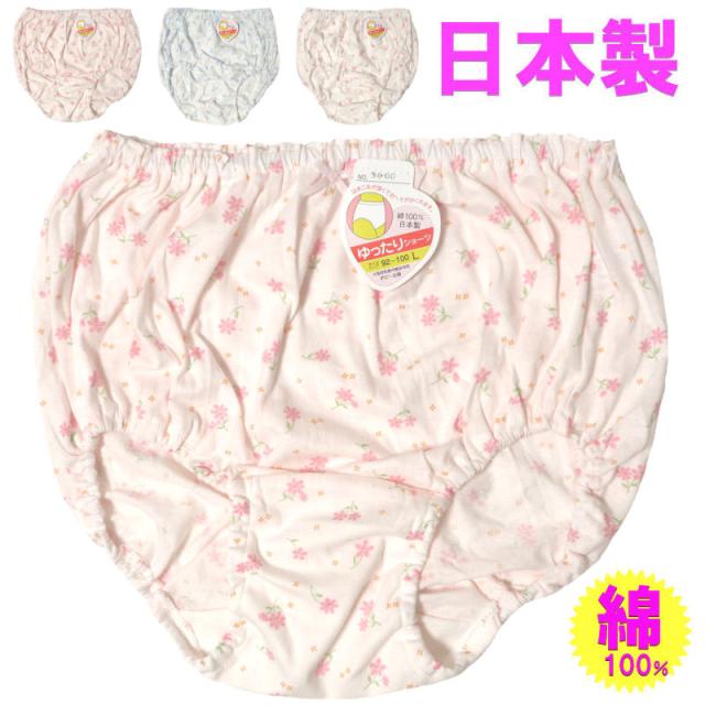 ショーツ レディース 日本製 綿100% コットン100% くるみゴム インゴム 花柄 フラワー 中腰 M/L/LL