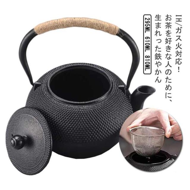 やかん 広口 鉄 ケトル ヤカン IH ガス火対応 紐ハンドル 鉄分摂取 300ml 600ml 800ml 鉄ビン 定年 湯沸かし 茶こし付き 茶器 キャンプ 鉄瓶 煎茶道具 茶道具 引き出物 金婚式 やかん 誕生日プレゼント 還暦祝い 退職 プレゼント お祝い 送料無料
