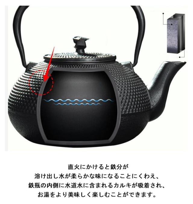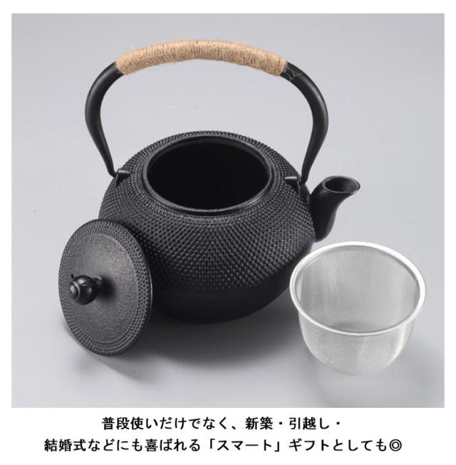 | IH/ガス火対応!お茶を好きな人のために、生まれった鉄やかん 直火にかけると鉄分が溶け出し水が柔らかな味になることにくわえ、鉄瓶の内側に水道水に含まれるカルキが吸着され、お湯をより美味しく楽しむことができます。 手に触れる部分には麻の紐を用いることで、使いやすさはもちろん、鉄瓶の古臭いイメージを払拭したモダンなデザインとなりました。 また麻の紐ハンドルを採用、やけどを避けてケトルを素手で掴むことができます。 底部は熱伝導率を高めるフラット形状で、IH調理器の使用に最適な底面積を確保。 電磁調理器(IH)、ガス火、直火、セラミックヒーターに対応。 普段使いだけでなく、新築・引越し・結婚式などにも喜ばれる「スマート」ギフトとしても◎ | |