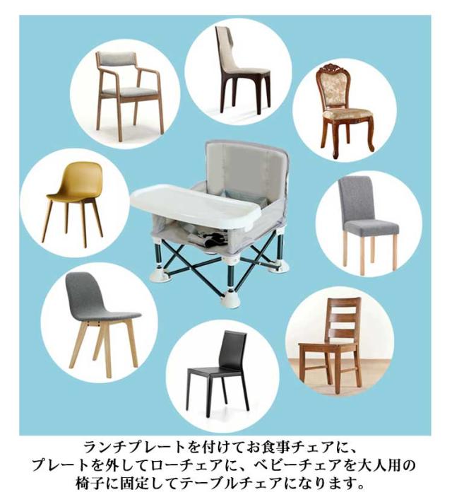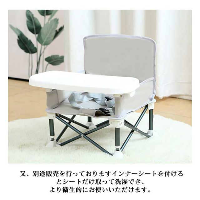 | 収納袋付き 折りたたみ ローチェア コンパクトに折りたためて、持ち運びに便利な折りたたみ式のベビーチェア 【3つの使い方】ランチプレートを付けてお食事チェアに、プレートを外してローチェアに、ベビーチェアを大人用の椅子に固定してテーブルチェアになります。 【着脱可能なカバーで衛生的に】カバーを外して洗濯できるので、汚れた時も心配ありません! 又、別途販売を行っておりますインナーシートを付けるとシートだけ取って洗濯でき、より衛生的にお使いいただけます。 【安定感UP】破れないために多針縫合布デザインで、重量が15kgまで載れます。お子さまの抜け出しを防ぐために腰ベルトでしっかり固定されています。 【外出便利】収納袋付きで持ち運びが出来るのでレストランやカフェでの外食・ママ会、公園でのピクニック、アウトドアでのバーベキューなど、さまざまなシーンでお使い頂けます。 | |
