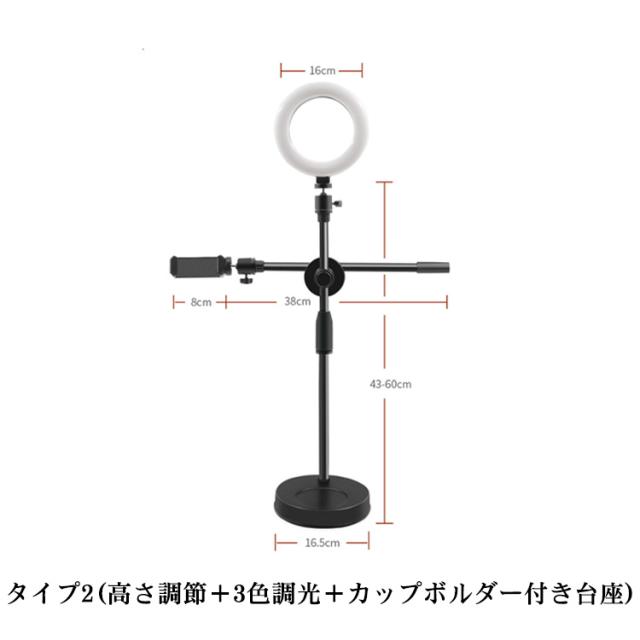 | サイズについての説明 | 対応スマホサイズ:約65〜100mm USBコード長さ:約1.45m 台座直径:約17cm 横ポール長さ:約38cm 縦ポール長さ:約44cm LEDライト直径:約16cm |