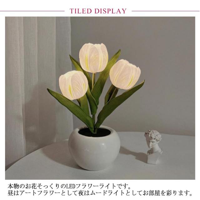 フラワーライト チューリップ LEDライト LEDフラワー 光る 花 フラワーブーケ 花束 装飾 インテリア 造花 ナイトライト ムードライト 間接照明 鉢付き チューリップポット 電池式 おしゃれ ウェディングブーケ 結婚式 飾り ギフト プレゼント 結婚祝い 誕生日 母の日