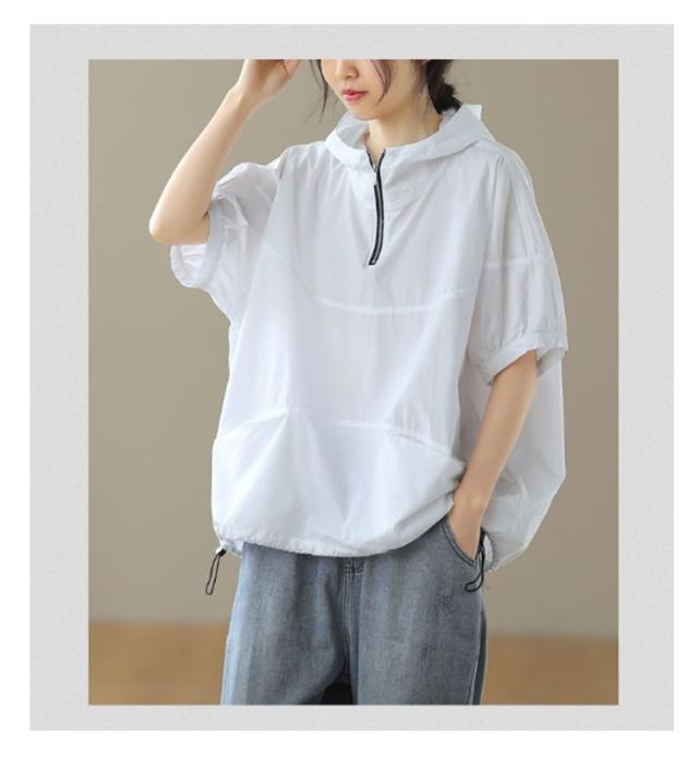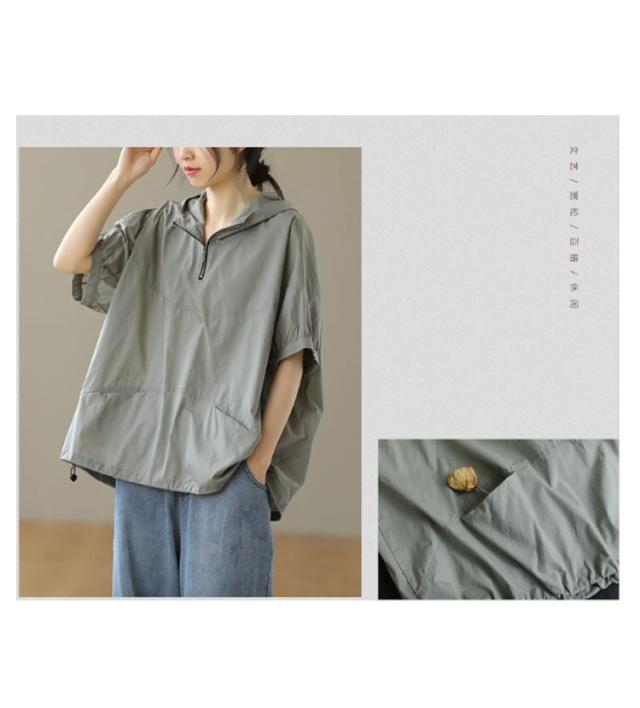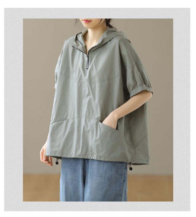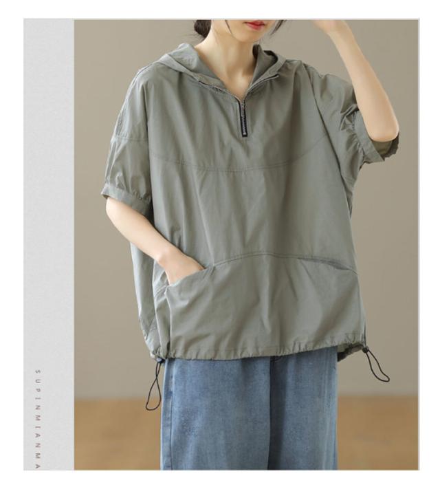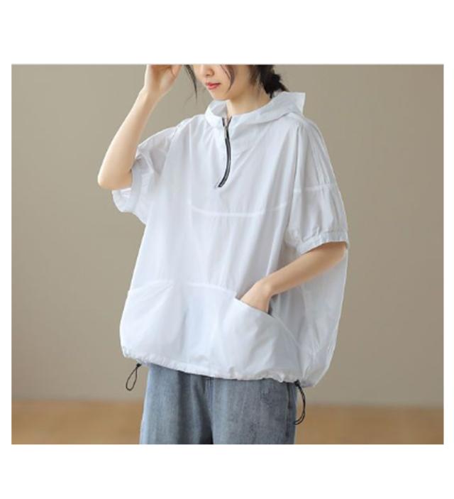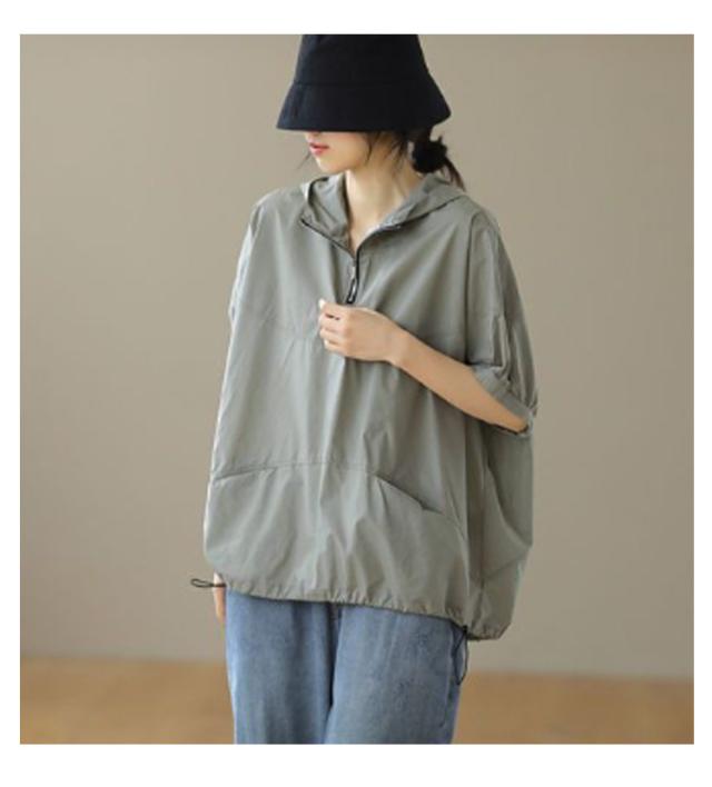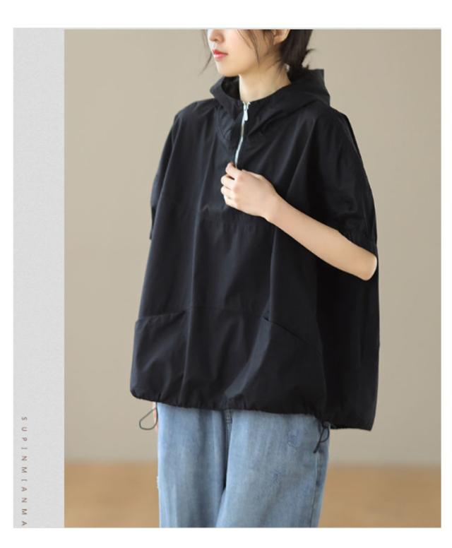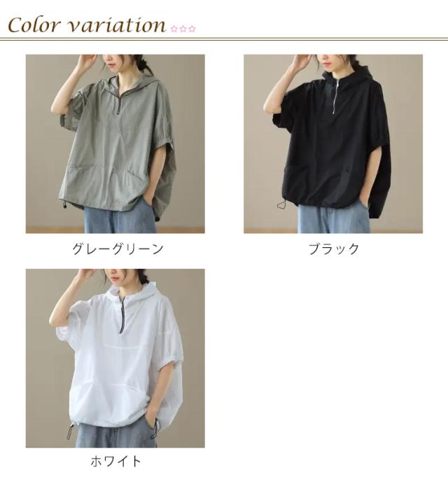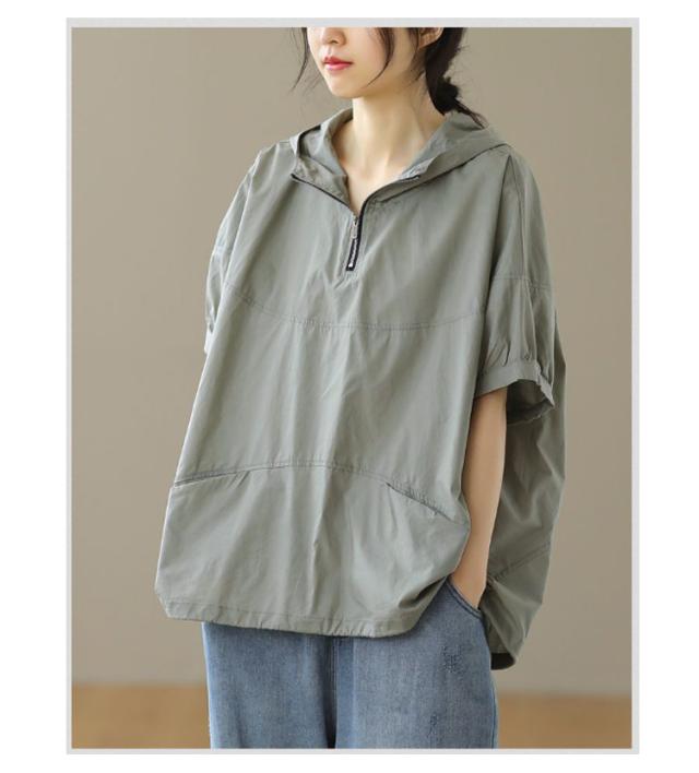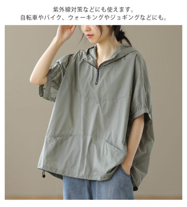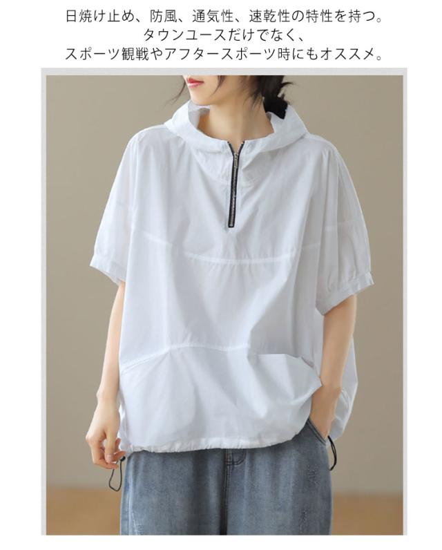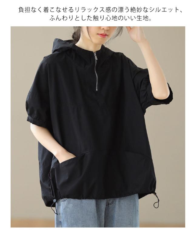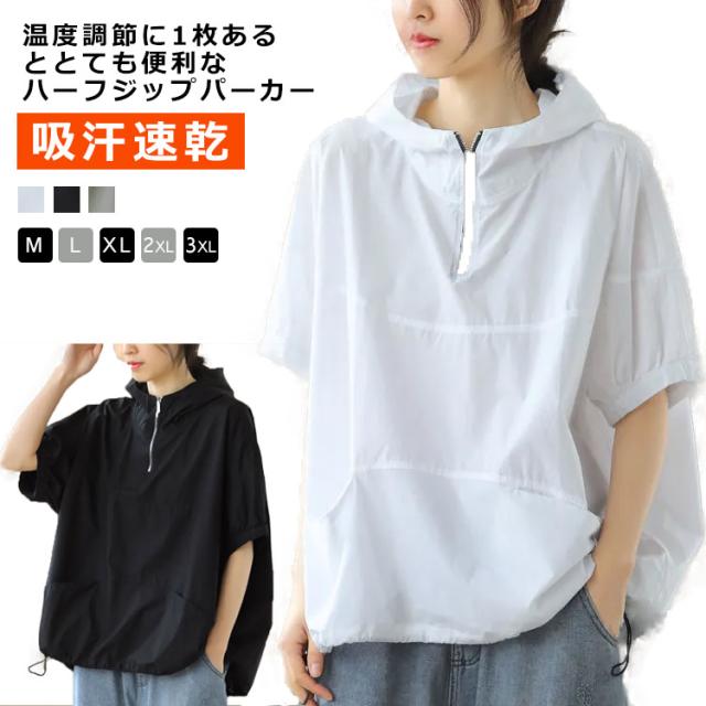 半袖 パーカー レディース ビッグシルエット プルオーバーパーカー ハーフジップ カジュアル おしゃれ オーバーサイズ サマーパーカー プルオーバー 吸汗速乾 5分袖パーカー 薄手 春夏 夏用パーカー 大きいサイズ シンプル 体型カバー ゆったり 送料無料