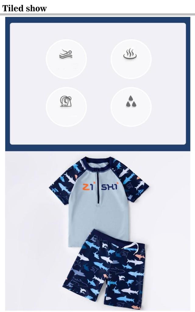 | 様々なシーンで、思い切り水遊びを楽しめる男の子水着セット 狭すぎず広すぎないラウンドネック、締め付けがなく快適な着心地。 伸縮性の高く柔らかい生地で、セパレートスタイルはお着替えも簡単。 海水浴やプールで大活躍で水泳トレーニング、夏のサーフィン、ビーチの休暇にもオススメの1着です。 110cm-160cmとサイズ展開も豊富なので兄弟お揃いコーデも出来ちゃう♪ | |
