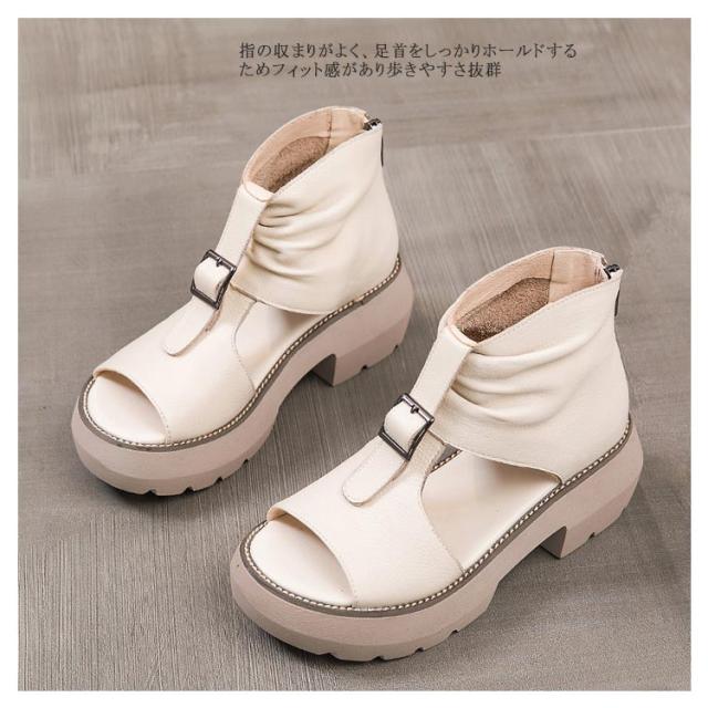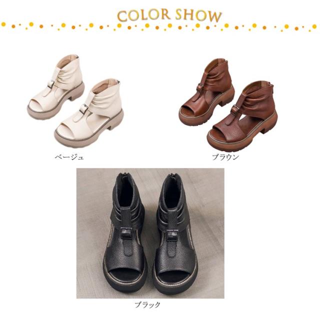 オープントゥ ブーツサンダル レディース 厚底サンダル ショートブーツ フラットシューズ 厚底シューズ ペタンコ コンフォート サマーブーツ 春 夏用 通気性 カジュアル 美脚 靴 パンプス オシャレ ブラック ベージュ ブラウン