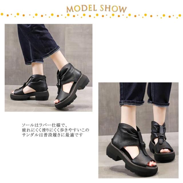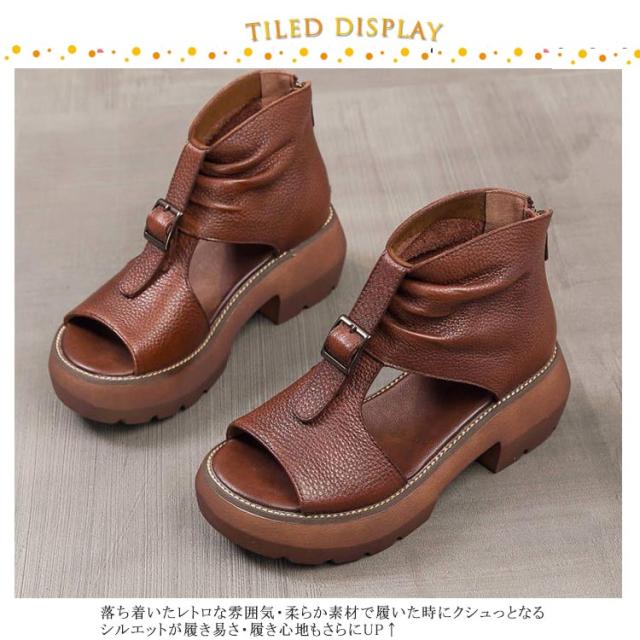 | ソフト感満点のが見た目も履いても優しいカジュアルブーツサンダルです。 落ち着いたレトロな雰囲気・柔らか素材で履いた時にクシュっとなるシルエットが履き易さ・履き心地もさらにUP↑ ソールはラバー仕様で、疲れにくく滑りにくく歩きやすいこのサンダルは普段履きに最適です 指の収まりがよく、足首をしっかりホールドするためフィット感があり歩きやすさ抜群 衝撃吸収効果の底仕様なので、 ヒールが苦手な方にも履きやすいデザインです バックジッパー付きのおしゃれなブーサンです。 ファスナーを上げ下げするだけで、楽に脱ぎ履きできます | |