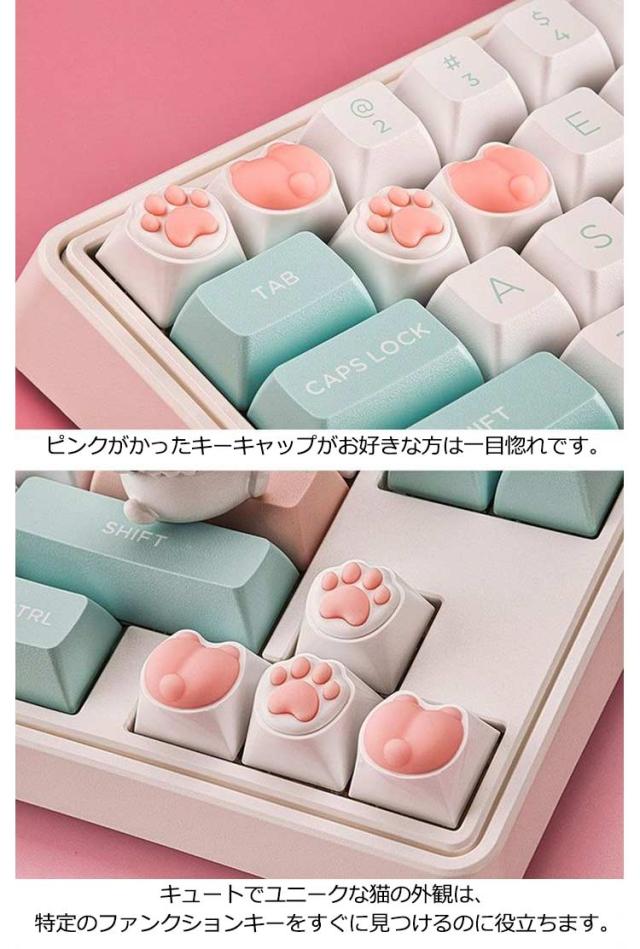 | 肉球デザインの可愛いキーキャップセット 立体感のあるユニークな肉球のデザインで存在感抜群のかわいいキーキャップ! 肉球部分はシリコン素材を使用し、押し心地がありプニプニ感がたまらない! ピンクがかったキーキャップがお好きな方は一目惚れです。 キュートでユニークな猫の外観は、特定のファンクションキーをすぐに見つけるのに役立ちます。 ゲーミングキーボードなどに多く採用されているメカニカルスイッチ(十字)に取付可能。 誕生日のプレゼント,キーボード愛好家のための理想的な選択です。 | |