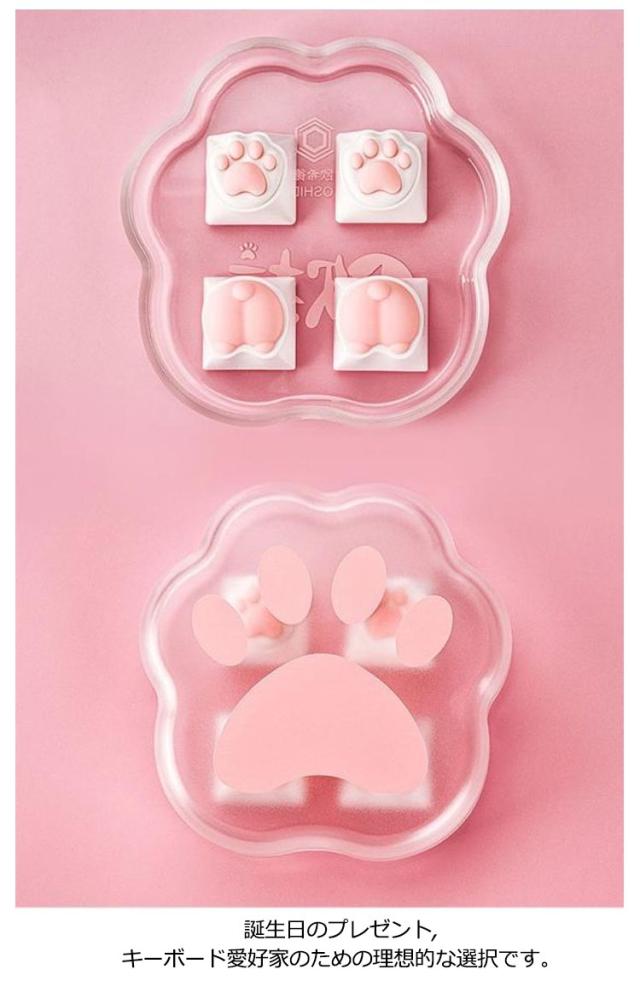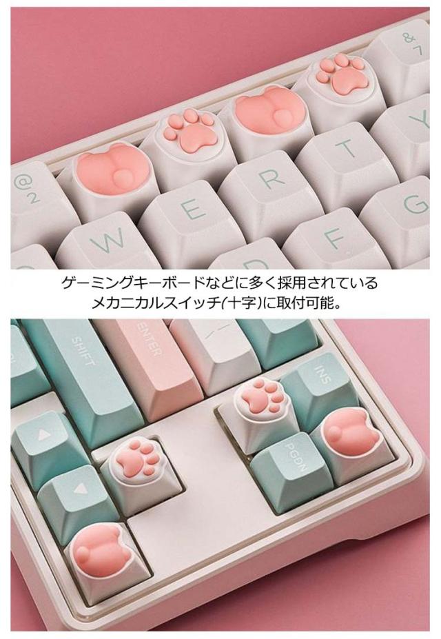 キーキャップ 肉球 キーボード かわいい 4個セット カスタムゲームキーキャップ DIY 猫の肉球型 猫爪 ピンク ネコ メカニカル キートップ シリコン 交換 プニプニ 誕生日 ギフト プレゼント 送料無料