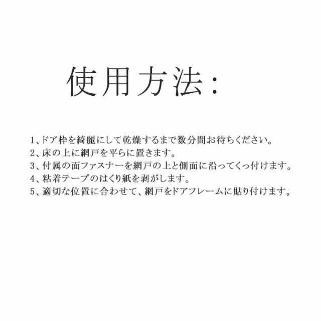 | 玄関や勝手口などに取り付けて風通しを良くできる便利アイテム。 自動で閉まる。強力な磁石により、素早く自動で閉まるので、荷物で両手がふさがっている時でも便利なマグネットカーテンです。子供やペットでも簡単に通れます。 一周全てマジックテープ式です、カーテンが丈夫に固定されます。 虫よけ・省エネ効果、取り付け簡単!簡単に設置できるのも嬉しいポイント♪ 網戸の外側に設置して虫を二重に防止し、夏でも風通しを快適に、省エネ効果も期待できます。 木製・鉄製などドアの素材を選ばず、玄関、寝室、勝手口、ベランダなどに簡単に取り付けることができます。 使用方法:1、ドア枠を綺麗にして乾燥するまで数分間お待ちください。 2、床の上に網戸を平らに置きます。 3、付属の面ファスナーを網戸の上と側面に沿ってくっ付けます。 4、粘着テープのはくり紙を剥がします。 5、適切な位置に合わせて、網戸をドアフレームに貼り付けます。 | |