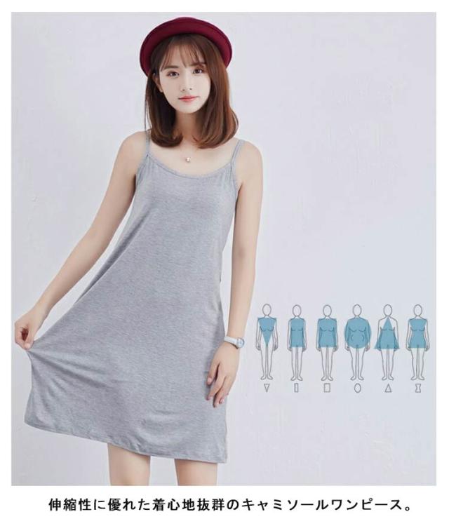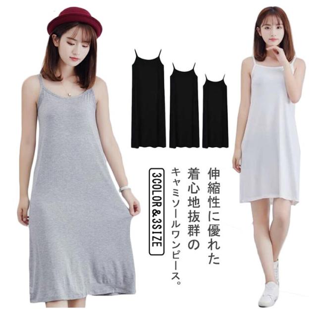 【送料無料】キャミソールワンピース ペチコート ノースリーブ ワンピース インナーワンピース 3丈さ選べる キャミワンピ 透け防止 部屋着 ルームウェア 無地 ロング丈 ショート丈 カジュアル コーデ シンプル 定番 セレカジ