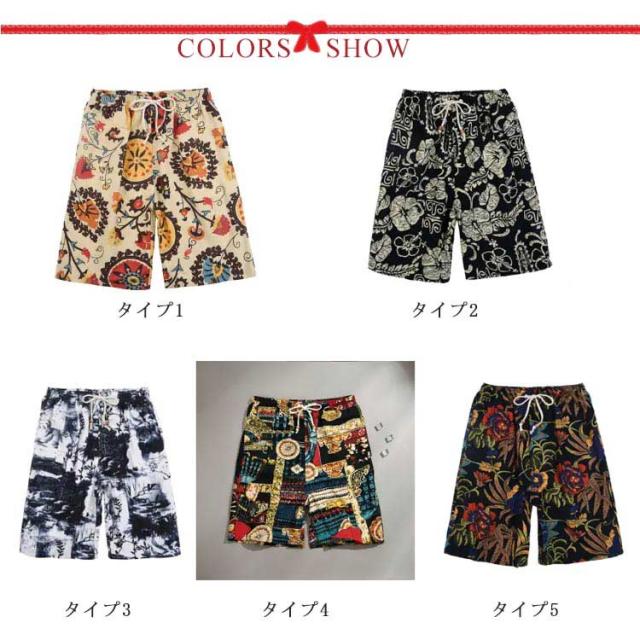 花柄 ショートパンツ ハーフパンツ メンズ リネン パンツ 5分丈 パンツ 綿麻 パンツ 花柄パンツ 綿麻 リネン リネンパンツ リネン ショーツ ショーパン 綿麻ショーツ 海パン サーフパンツ 海水パンツ ルームウェア