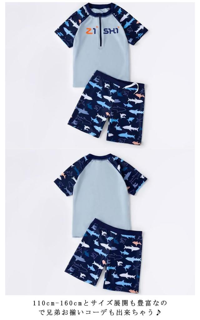 | 様々なシーンで、思い切り水遊びを楽しめる男の子水着セット 狭すぎず広すぎないラウンドネック、締め付けがなく快適な着心地。 伸縮性の高く柔らかい生地で、セパレートスタイルはお着替えも簡単。 海水浴やプールで大活躍で水泳トレーニング、夏のサーフィン、ビーチの休暇にもオススメの1着です。 110cm-160cmとサイズ展開も豊富なので兄弟お揃いコーデも出来ちゃう♪ | |
