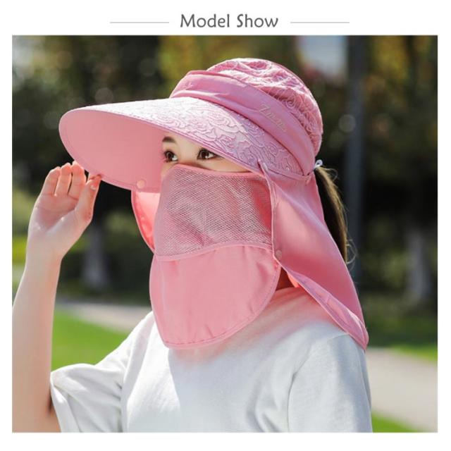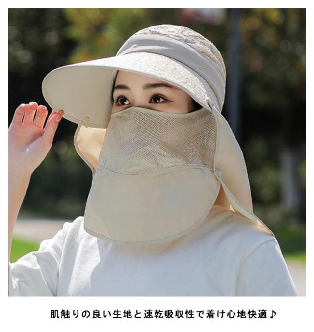 日除けハット UVカット 日焼け防止 紫外線対策 ガーデニング キャップ サンバイザー ネックガード フェイスガード 4WAY UPF50+ メッシュ生地 日よけ 帽子 農作業 フェイスカバー 折りたたみ 無地 花柄 スポーツ ランニング 春 夏 秋 プレゼント ギフト