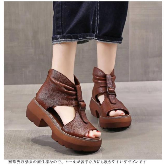 | ソフト感満点のが見た目も履いても優しいカジュアルブーツサンダルです。 落ち着いたレトロな雰囲気・柔らか素材で履いた時にクシュっとなるシルエットが履き易さ・履き心地もさらにUP↑ ソールはラバー仕様で、疲れにくく滑りにくく歩きやすいこのサンダルは普段履きに最適です 指の収まりがよく、足首をしっかりホールドするためフィット感があり歩きやすさ抜群 衝撃吸収効果の底仕様なので、 ヒールが苦手な方にも履きやすいデザインです バックジッパー付きのおしゃれなブーサンです。 ファスナーを上げ下げするだけで、楽に脱ぎ履きできます | |