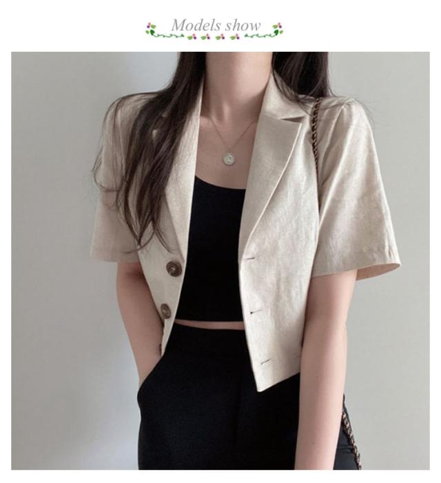 リネン テーラードジャケット ショート丈 半袖 ジャケット 薄手 夏 テーラードジャケット 綿麻 テーラードジャケット 夏 サマー ジャケット レディース サマー ブレザー カジュアルジャケット オフィス フォーマル ジャケット送料無料