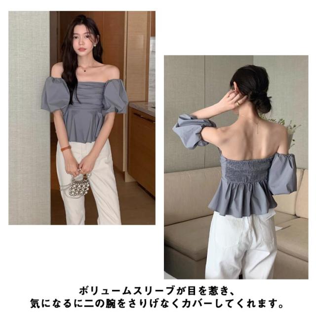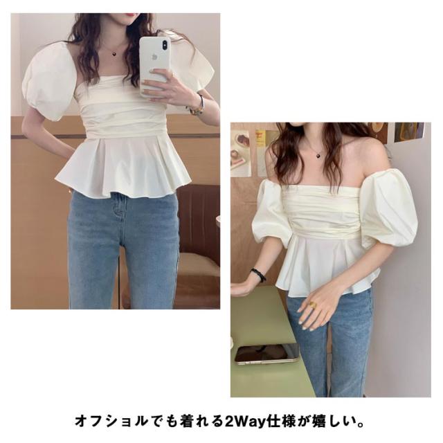オフショルダー ブラウス 夏 半袖 ブラウス レディース 2way トップス 可愛い フレアブラウス 肌見せ トップス オープンショルダー ブラウス オフショル 肩出し 肩見せ ブラウス パススリーブ フレアスリーブ フリル ブラウス スクエアネック ブラウス 体型カバー 送料無料