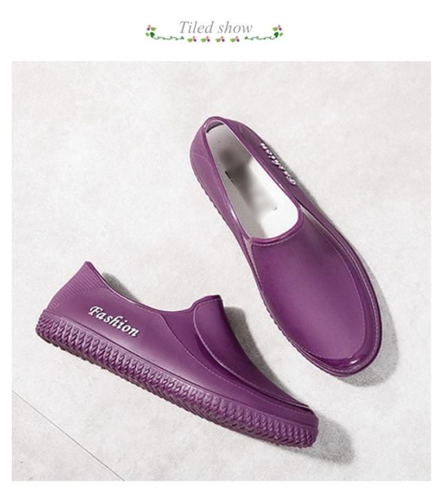 | 【商品名】レインシューズ 【サイズ】 36(22.5-23.0) 37(23.0-23.5) 38(23.5-24.0) 39(24.0-24.5) 40(24.5-25.0) 41(25.0-25.5) 【素材】PVC素材 【特徴】 雨の日も足元オシャレに楽しくお出かけ♪ 一足あれば安心のレインシューズの紹介です。 雨が止んでも気にせず履けちゃうありそでなかったスリッポンタイプ。 晴雨兼用がうれしい☆ PVC素材なので雨の浸入をシャットアウトし、あの不快感を防止します! シンプルでどんなコーディネートにも合わせやすいおすすめアイテムです。 | |