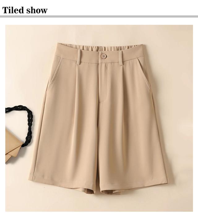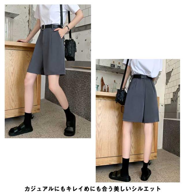 ショートパンツ スラックス タック入り レディース キュロット パンツ ハイウエスト ハーフパンツ ワイド 体型カバー 美脚 膝丈 5分丈 ポケット付き 接触冷感 落ち感 半ズボン 短パン 大人 おしゃれ 春 夏 ゴムウエスト 【送料無料】