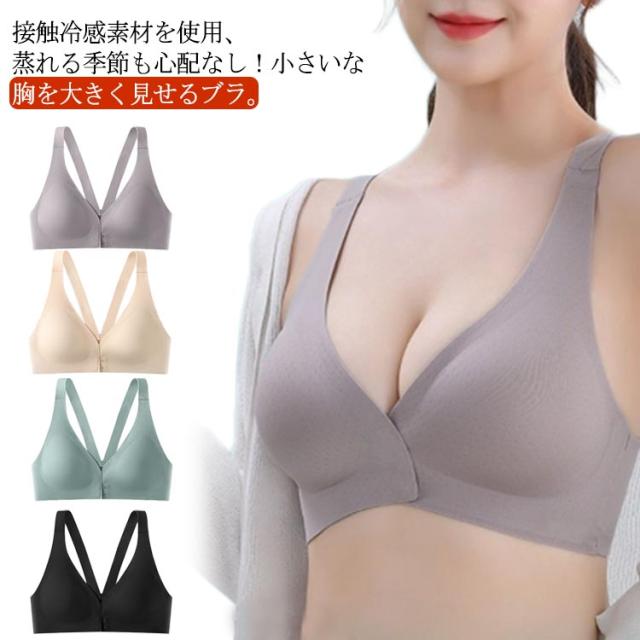 | 接触冷感素材を使用、蒸れる季節も心配なし!小さいな胸を大きく見せるブラ。 取り外し可能のカップで、洗いやすいも嬉しいポイント。 フロントホックで谷間メイク×ノンワイヤーで窮屈感を軽減。 しっかり胸をつつんで綺麗なシルエットを作ります。 ストラップも太目仕様なので、肩への食い込みも軽減されます。 X字型バックストラップで背中をフラットに抑え、スッキリとした後ろ姿に。 | |