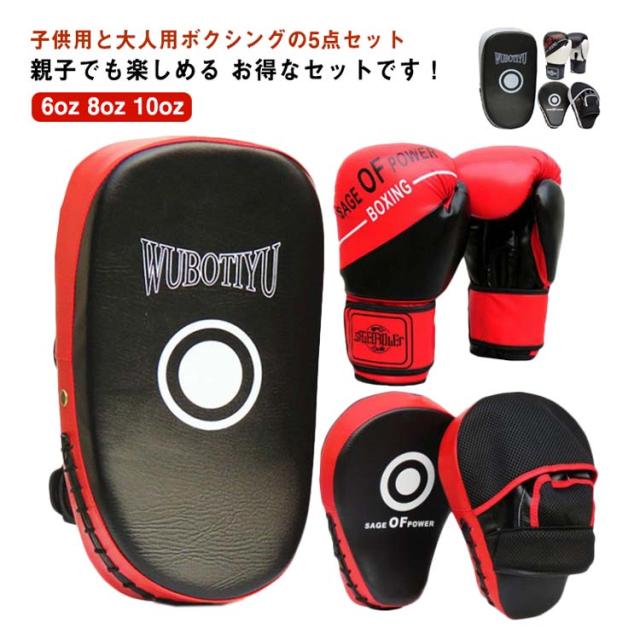 ボクシング グローブ ミット セット 5点 ボクシング 子供用 大人用 武術 練習用 親子 ボクシンググローブ パンチングミット 格闘技 空手 ミット テコンドー ボクサー 大人ボクシングパッド キックボクシングパッド パンチング ボクシング トレーニング