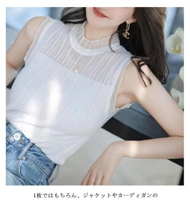 レディース エレガント リブニット ニットトップス ハイネック カットソー 春 夏 秋 冬 タートルネック ノースリーブ サマーニット きれいめ かわいい 上品 オフィス 通勤 通学 韓国ファッション 20代 30代 40代 50代 送料無料