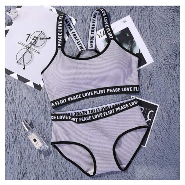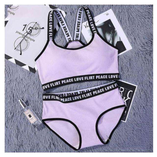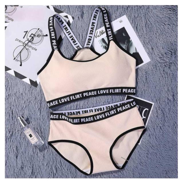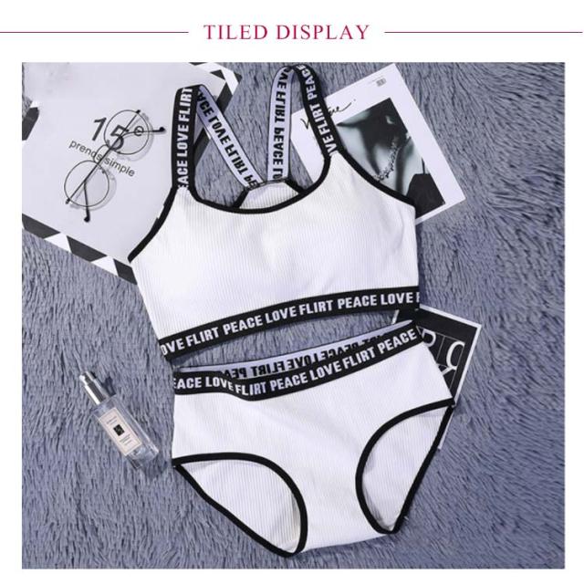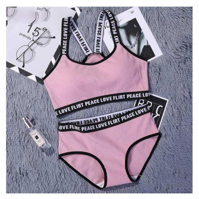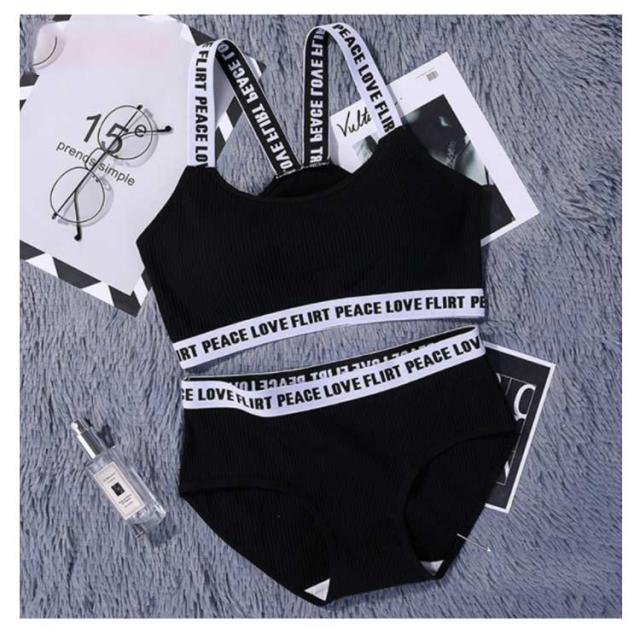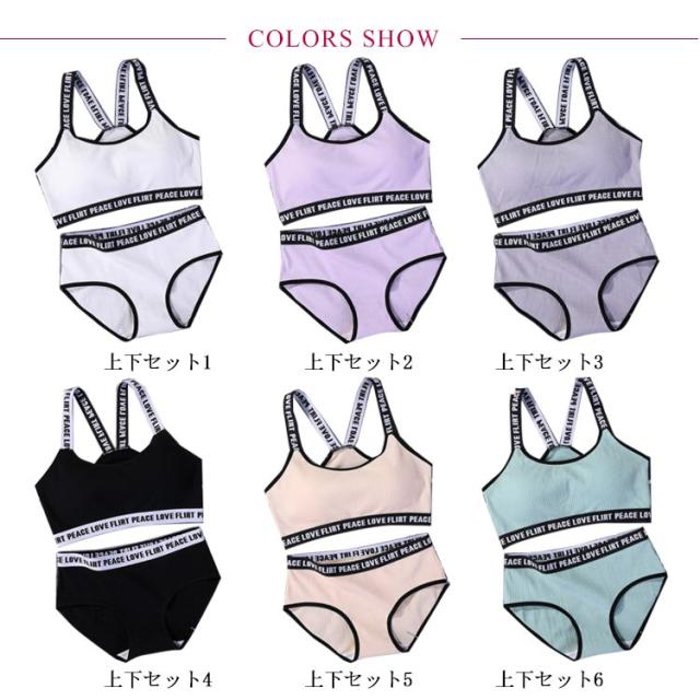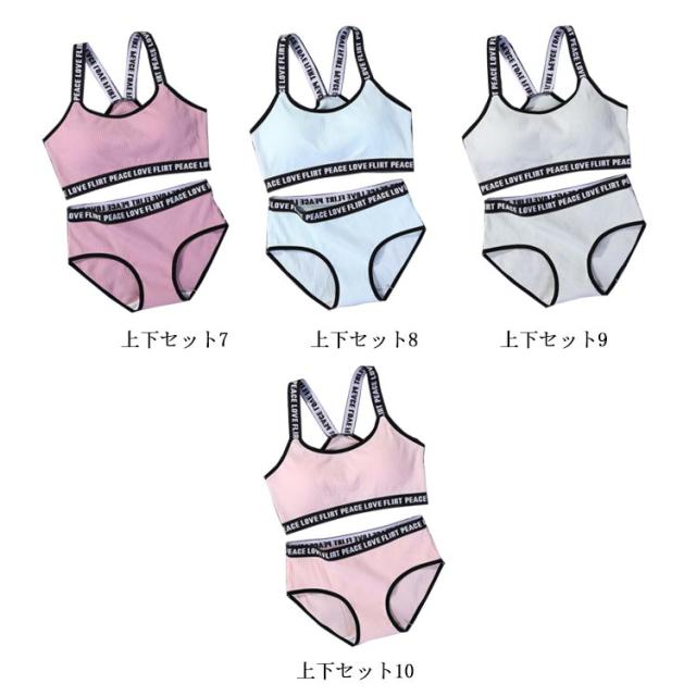 | ジュニア用スポーツブラとショーツのセット 気持ちいい肌触り綿素材使用 シンプルでおしゃれな人気の英字ロゴテープデザインがポイント | |