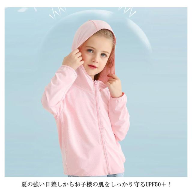 送料無料 ラッシュガード 海 プール キッズ 長袖 女の子 男の子 パーカー 夏 フード付き おしゃれ かわいい 子ども 子供用 大きいサイズ ラッシュパーカー 前開き ジップアップ 指穴付き UVカット 紫外線対策 UPF50+ スイミング 海水浴 プール 水あそび スポーツ 運動 公園