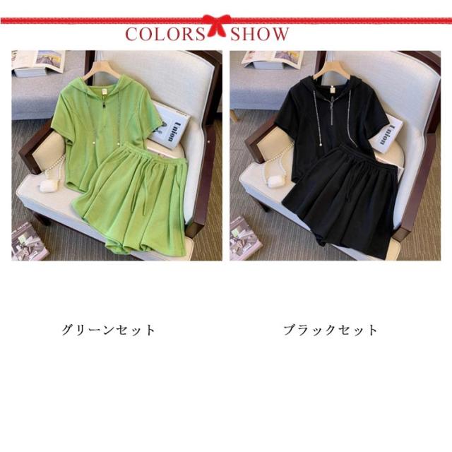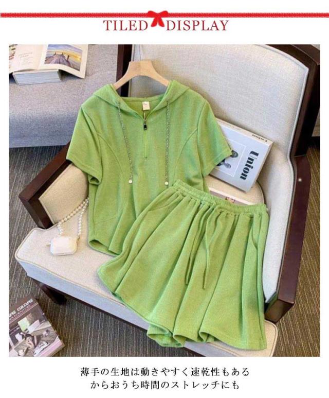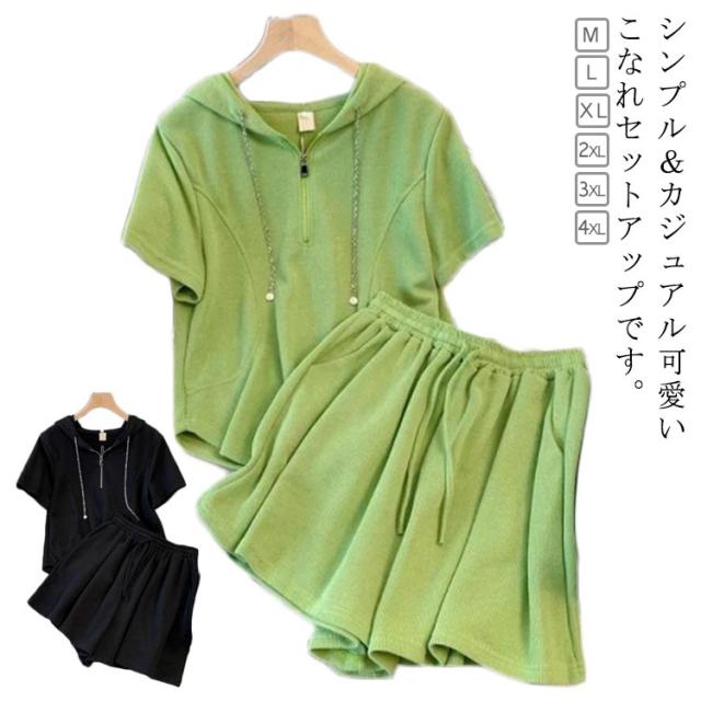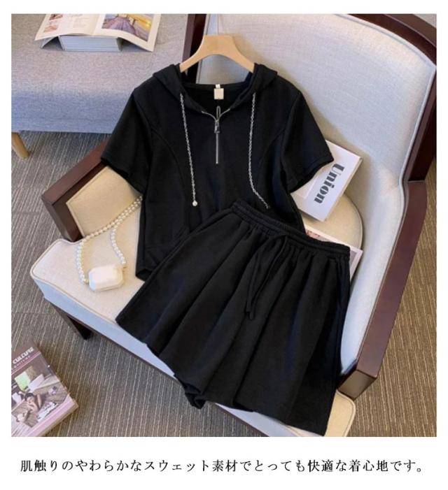部屋着 セットアップ レディース スウェット ジャージ 夏 ルームウェア ショートパンツ 半袖 フード付き スウェット 上下セット パンツ 女性 おしゃれ スエット スポーツウェア 春 夏 シンプル パジャマ ウエストゴム 旅行 韓国 20代 30代 40代 50代 送料無料 カジュアル
