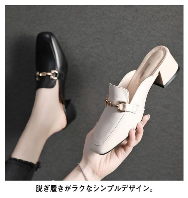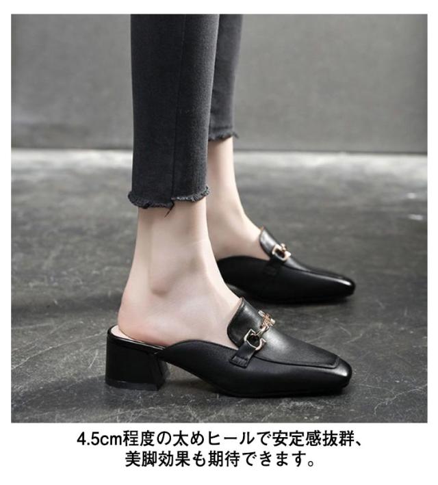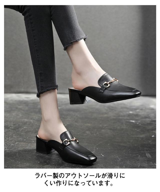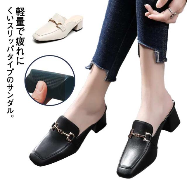 サンダル レディース オフィスサンダル 送料無料 スリッパタイプ チャンキーヒール かかとなし ローヒール 歩きやすい 楽 カジュアル きれいめ おしゃれ オフィス 春 夏